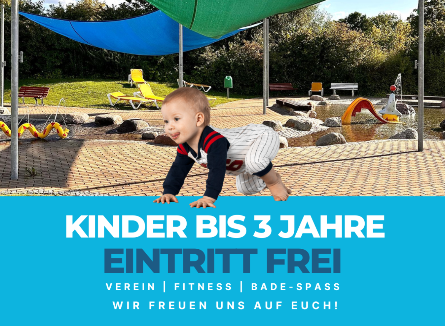 zahlen bei uns keinen Eintritt! Diese Frage wurde uns in der Vergangenheit des Öfteren gestellt. Nur die Begleitperson(en) zahlen den entsprechen- den Eintrittspreis. Wir haben einen Klienkind-Bereich mit Sonnen- segeln und Bänken direkt für die Eltern am Wasser, so dass die Kinder immer im Blick befinden.